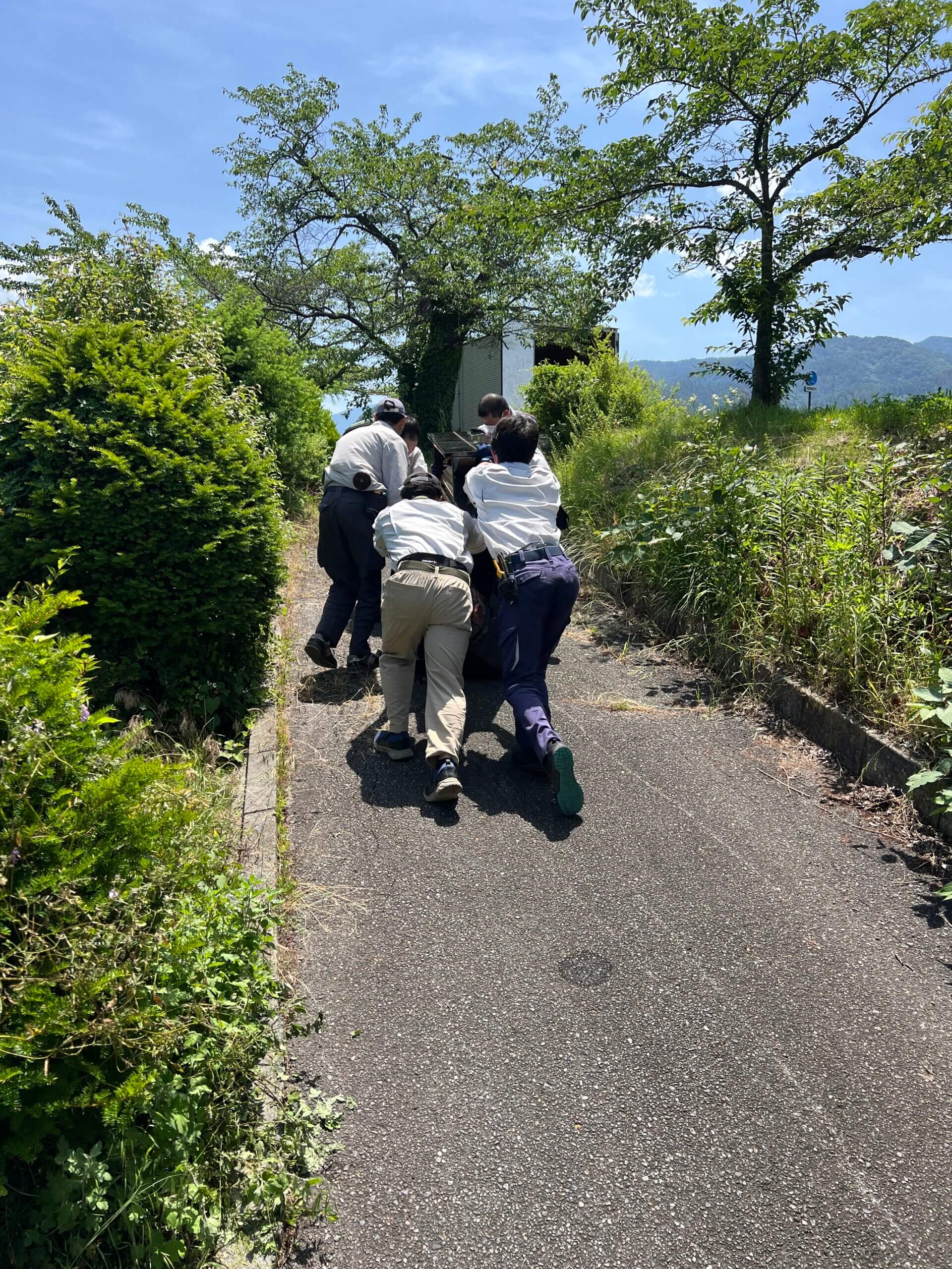 ちょうど梅雨入りの時期ではありましたが、幸い3日間とも天候に恵まれ、30℃を超える猛暑の中での作業となりました。水分を取りながら熱中症対策を万全に進めました。