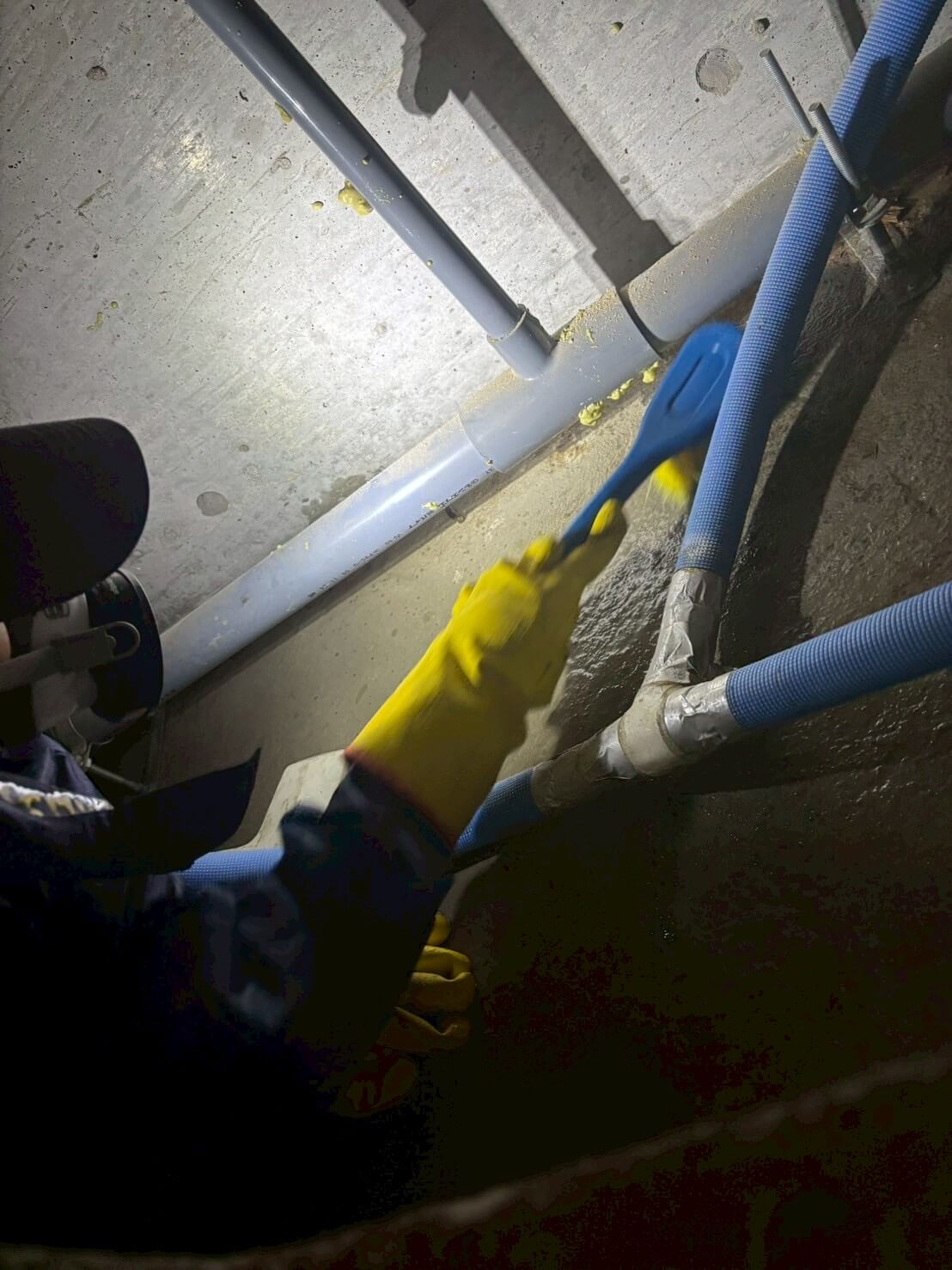 今回のご依頼は、「床下に汚水が溜まってしまったので、吸い出して清掃と消臭と消毒をしてほしい」というものでした。