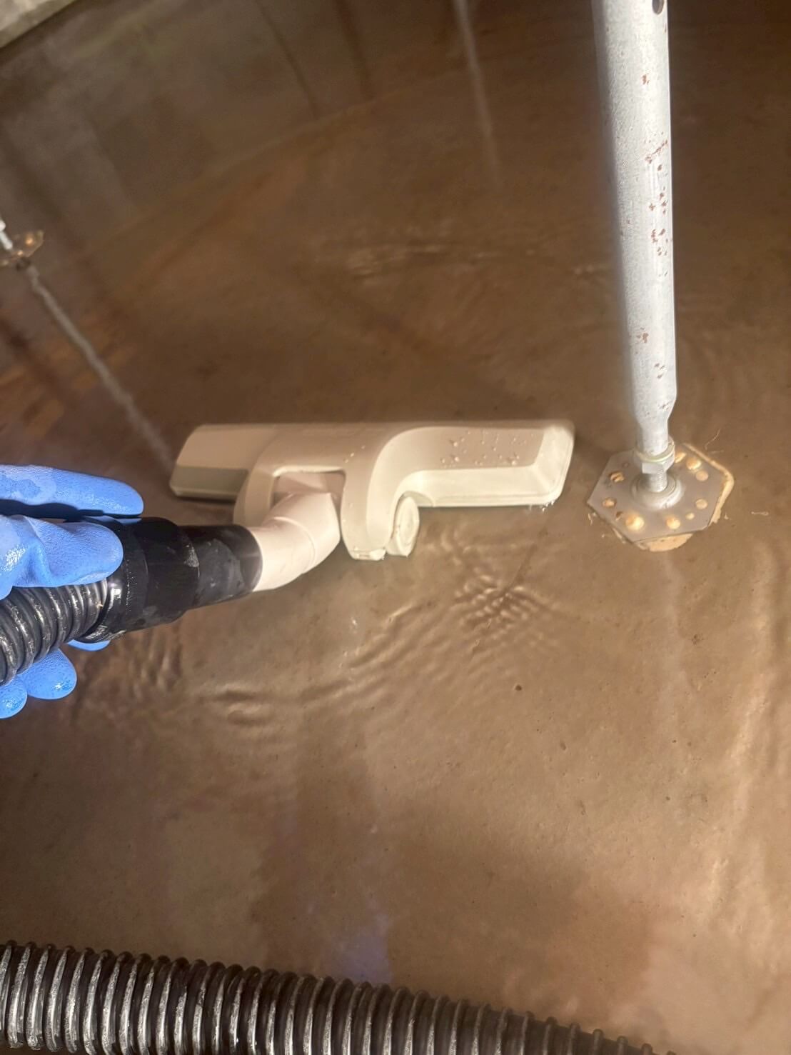私たちはまず排水・吸水作業を行い、その後しっかりと床下全体の清掃を行いました。