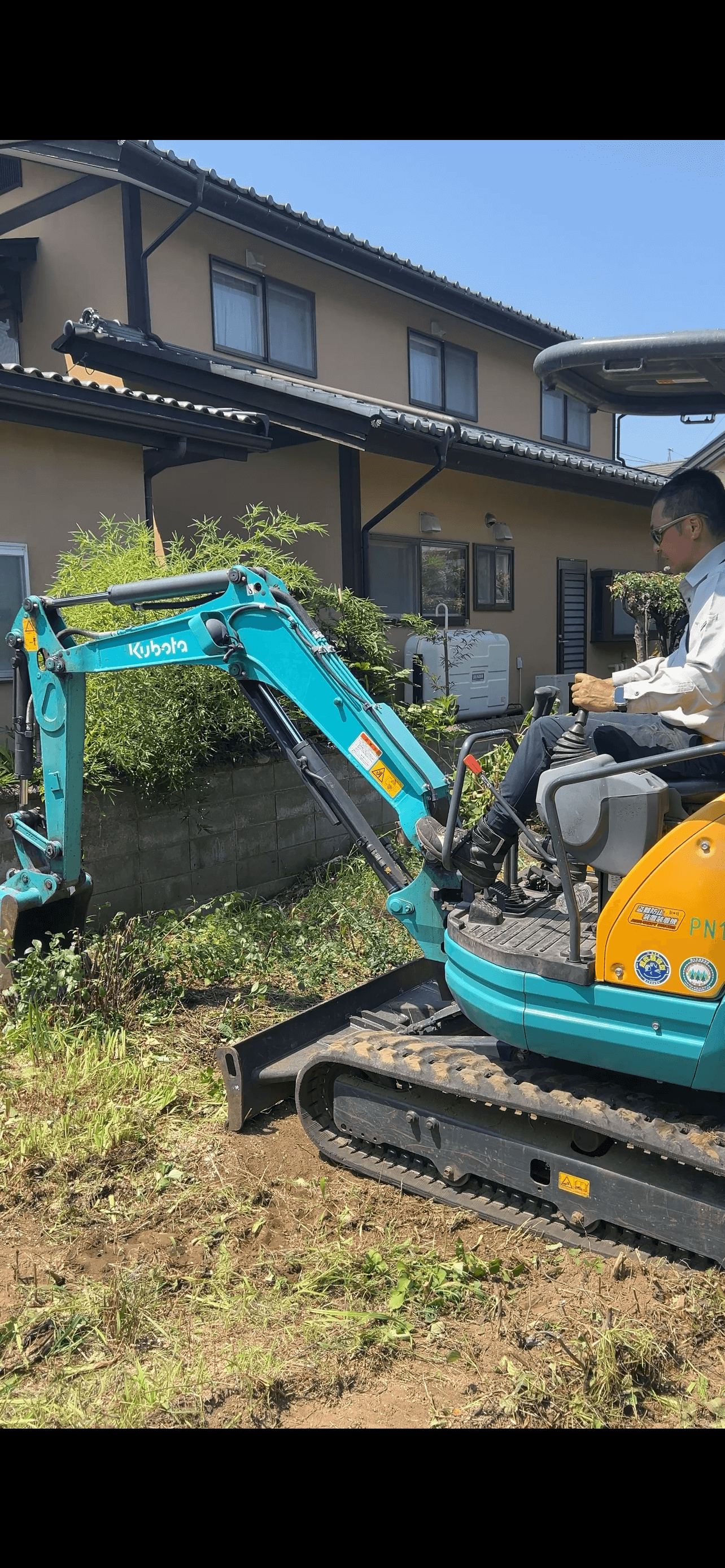今回も、自ら重機に乗って作業。