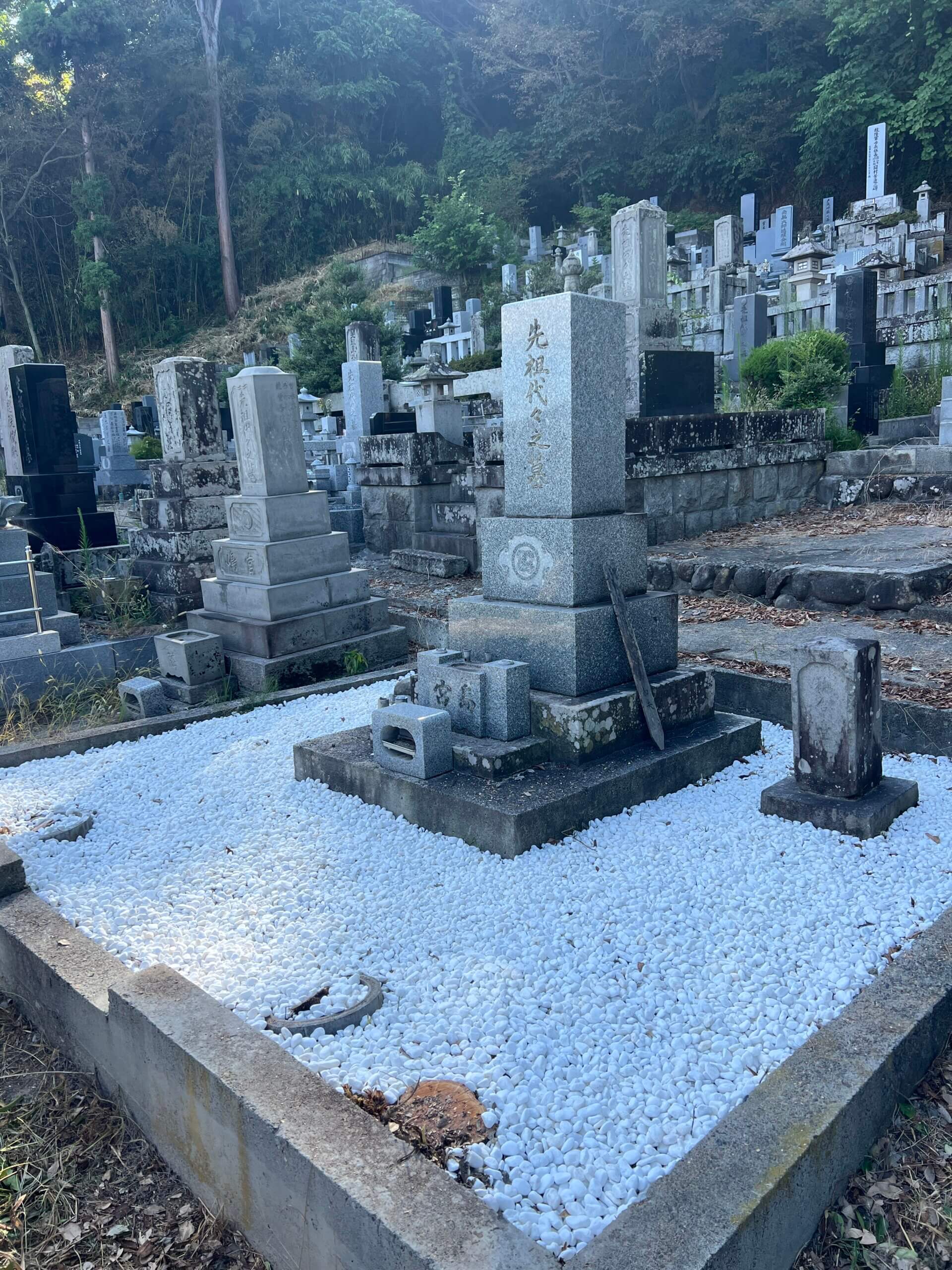 白い砕石を敷き詰めてきれいになったお墓[/caption]