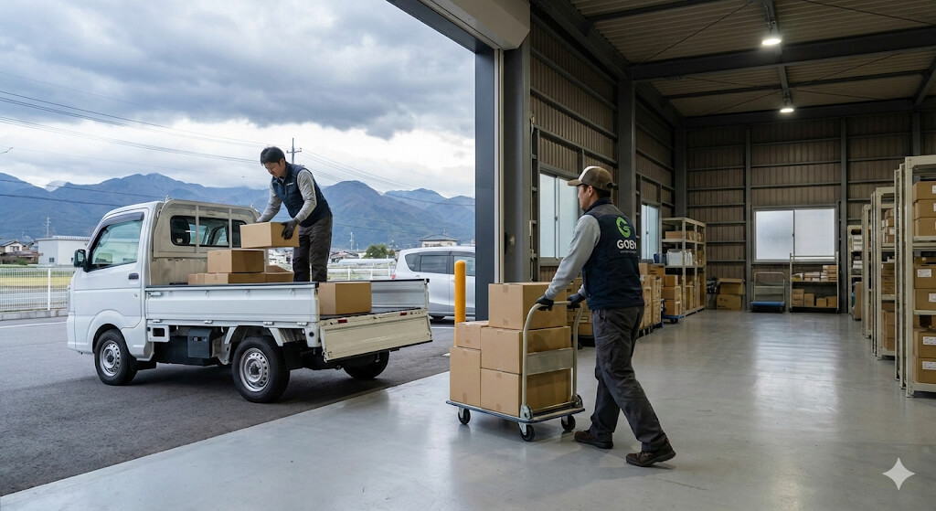 [caption id="attachment_3365" align="aligncenter" width="1024"]倉庫に搬入中のスタッフ イメージ画像です[/caption] この日は、荷物を多く積んだMT(マニュアル)軽トラックで峠を越える必要があり、久々に神経を使った一日でした。